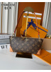 Вишукана сумка Луї Віттон Шолдер Бег виготовлена з фірмового канвасу Монограм коричневого кольору та натуральної шкіри бежевого відтінку. Червона окантовка ручки додає яскравий акцент. Компактна модель доповнена фірмовими підвісками-брелоками. Універсальний дизайн пасує як для щоденного стилю, так і для вечірніх виходів.